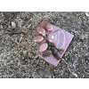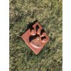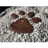 Oryginalny nagrobek dla psa w kształcie łapy z imieniem i datami.