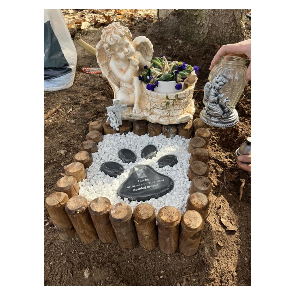 Nagrobek upamiętniający łapę psa umieszczany jest na kwadratowej podstawie, którą można przykryć ziemią, pozostawiając widoczną tylko łapę. Na pomniku może zostać wygrawerowany tekst, zdjęcie psa, serce lub łapy, zgodnie z życzeniem klienta.