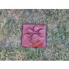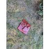 Oryginalny nagrobek dla psa w kształcie łapy z imieniem i datami.
